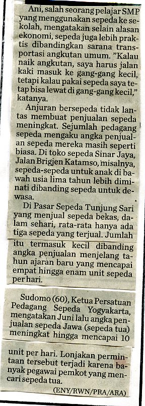 Bersepeda Sebagai Gaya Hidup Baru Sego Segawe, "Sepeda Kanggo Sekolah lan Nyambut Gawe"