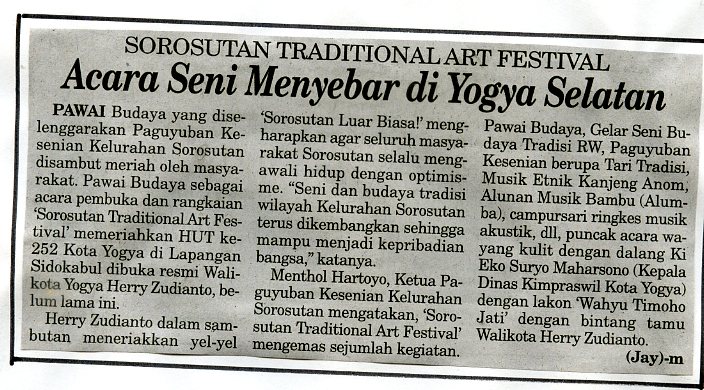 Sorosutan Traditional Art Festival Acara Seni Menyebar di Yogya Selatan