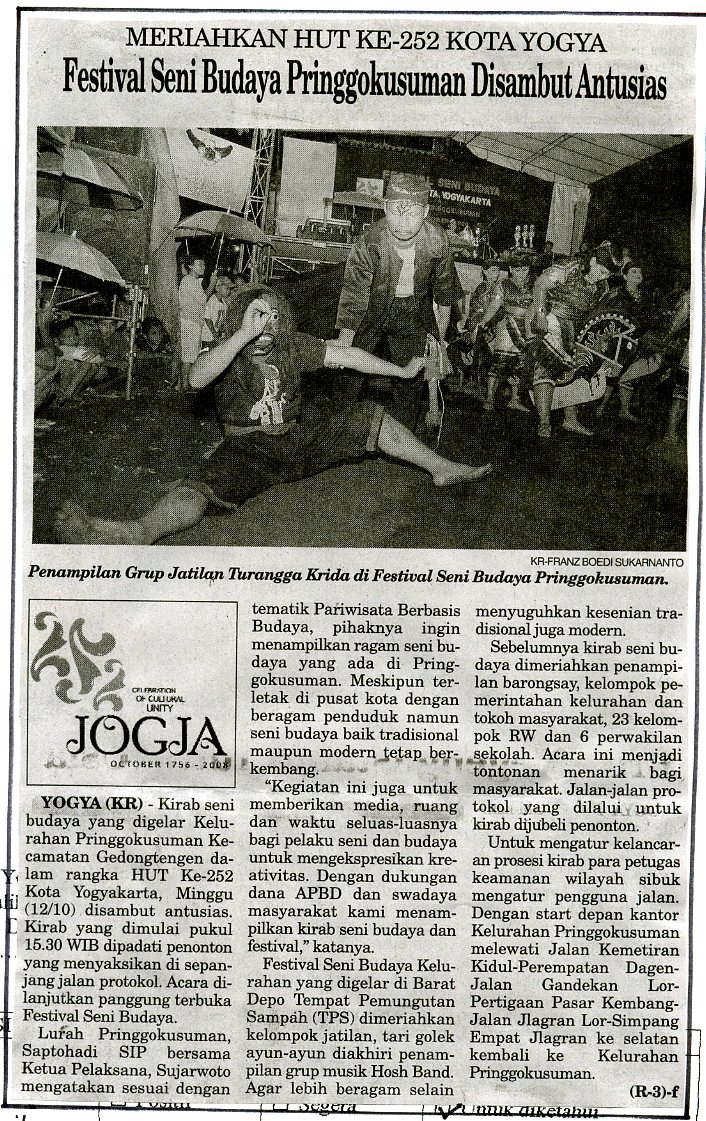 Meriahkan HUT ke-252 Kota Yogya Festival Seni Budaya Pringgokusuman Disambut Antusias